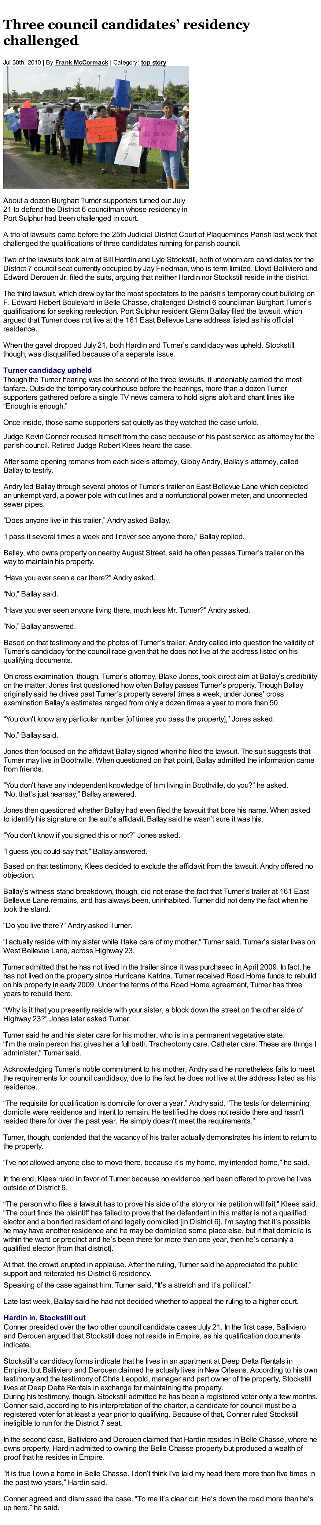of my published work. Publications include The St. Bernard Voice, The Plaquemines Gazette,